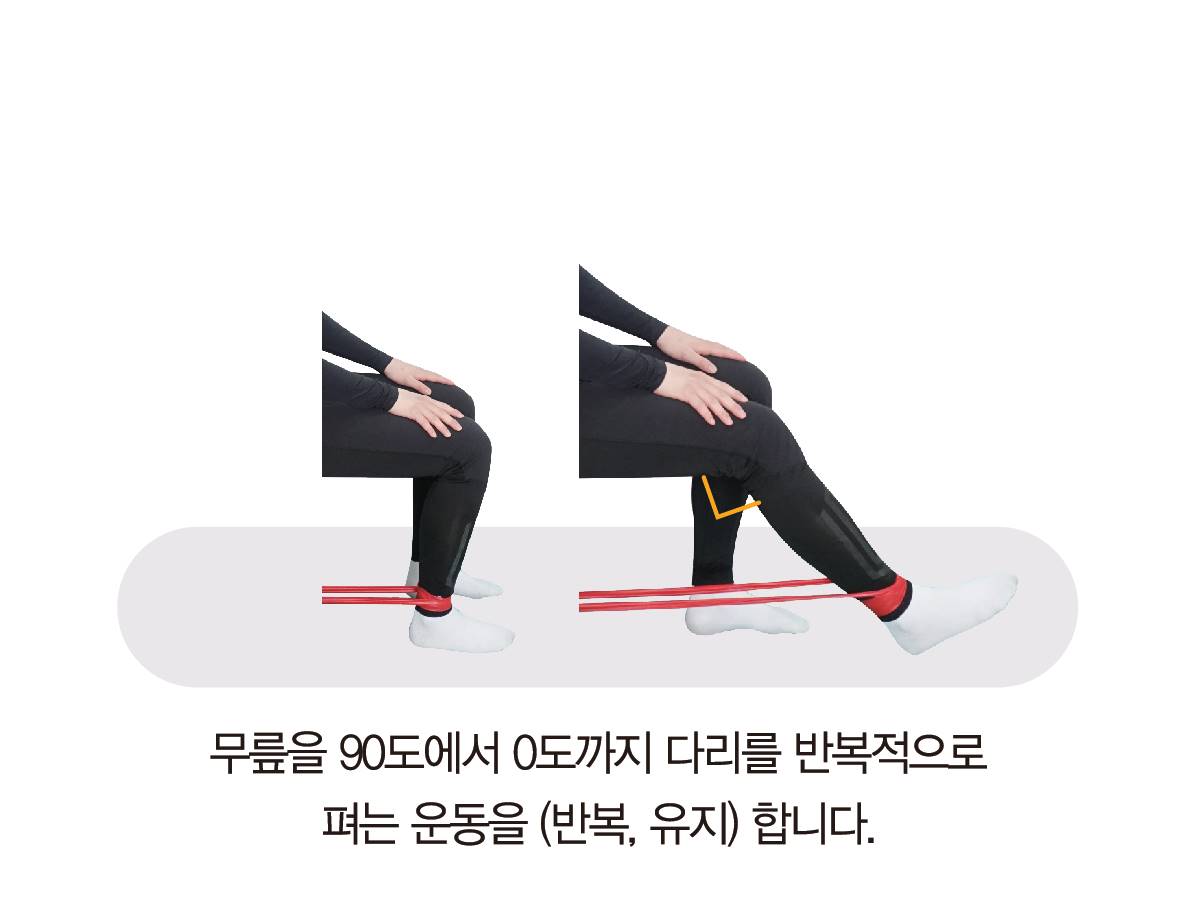 의자에 앉아 무릎 펴기 운동을 통해 무릎 위 허벅지 안쪽 근육인 대퇴사두근을 강화해 무릎 연골에 손상을 줄일 수 있다.