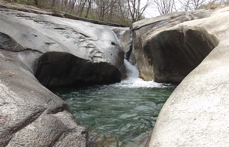 하류 구군안 물이 얇고 유속이 완만해 아이들과 함께 안전하게 물놀이를 즐길 수 있습니다. 상류로 올라갈수록 물이 더 깨끗해지고, 깊은 곳도 있어 트레킹과 산림욕을 즐기기에 딱 좋습니다. 명지폭포까지 이어지는 등산로도 잘 정비되어 있어 자연속에서 힐링하며 걷기에 좋습니다.