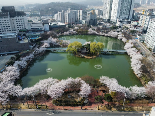 이천시에 위치한 안흥지는 조선의 정취와 벚꽃이 어우러진 독특한 명소입니다. 저수지 주변에 핀 벚꽃이 물 위로 비치며 고즈넉한 풍경을 만듭니다. 특히 정자와 현대적인 건물이 조화를 이루며 색다른 분위기를 자아냅니다.
