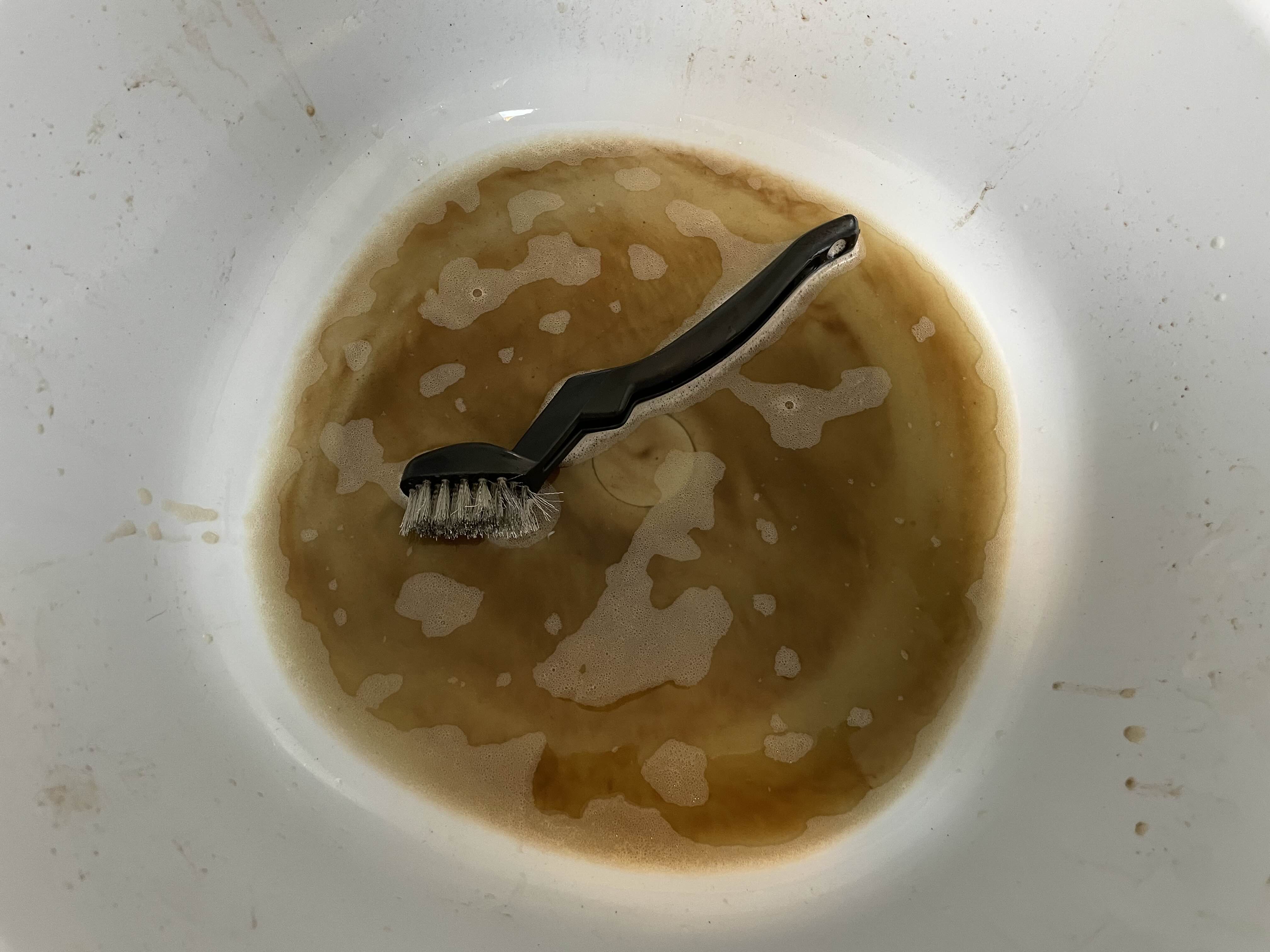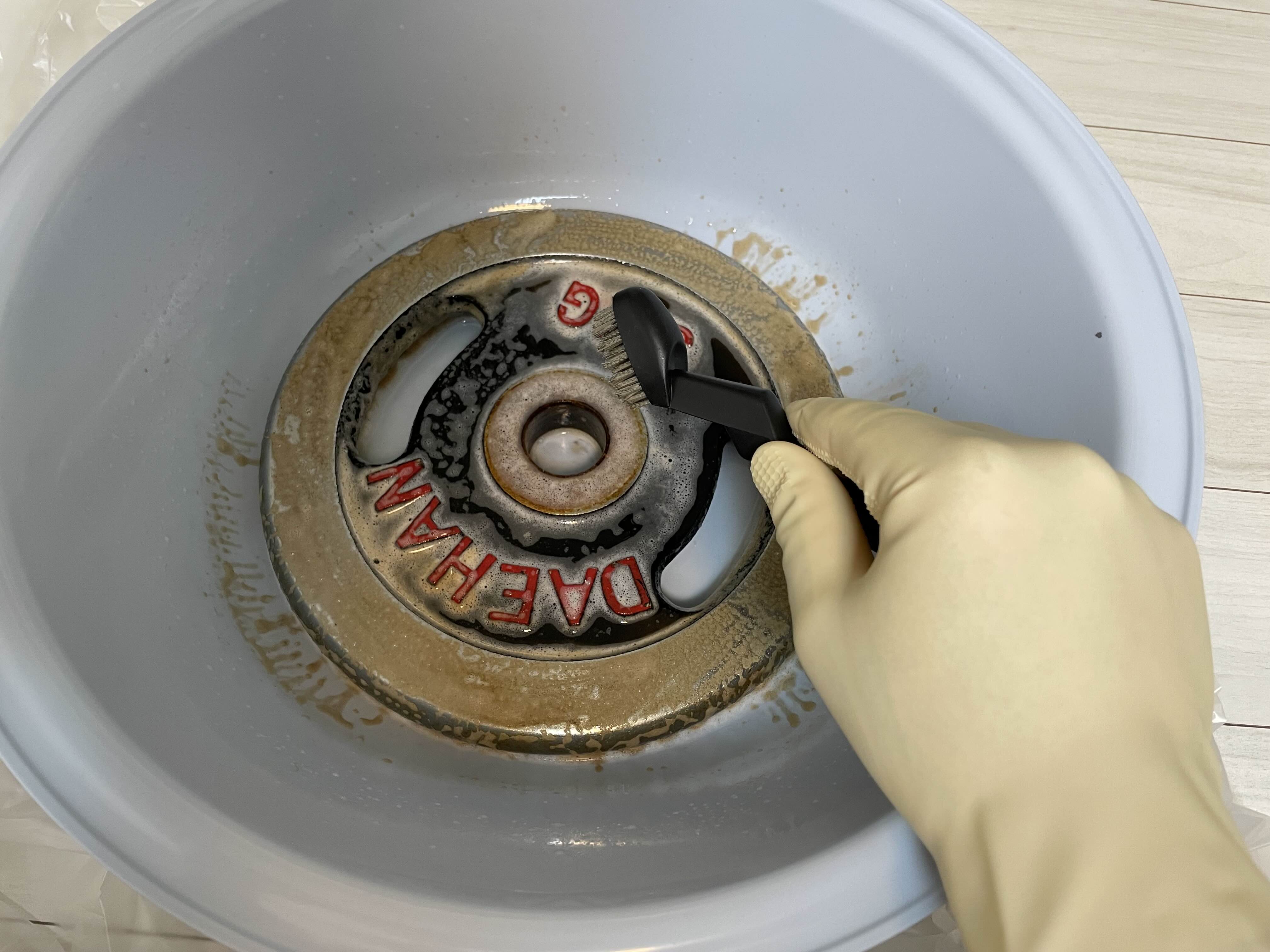10~15분 정도 흘렀다면 브러시로 녹 제거를 시작하자. 브러시는 스테인리스솔을 이용하자.