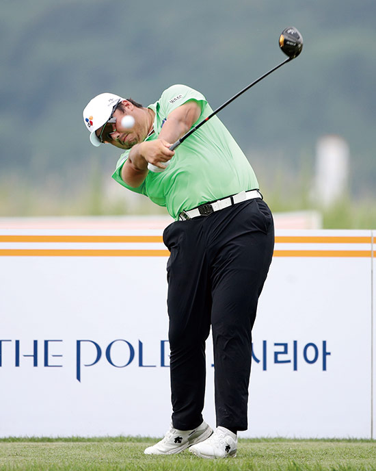양용은 선수의 드라이버샷 거리를 늘리기 위한 어드레스 자세