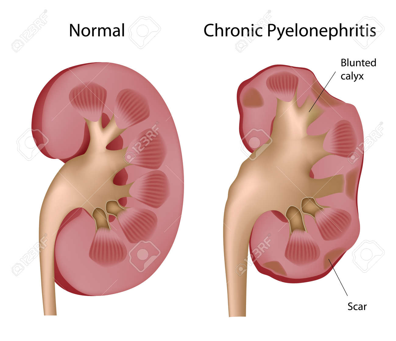 반복적으로 급성 신우신염이 발생하면 만성 신우신염으로 진행될 수 있기 때문에 조심해야 한다. 만성 신우신염은 CT나 초음파 검사를 해보면 신장 피질에 흉터가 생겨 신장이 울퉁불퉁하게 보인다. 신장 기능이 저하될 수 있어 특히 조심해야 한다.