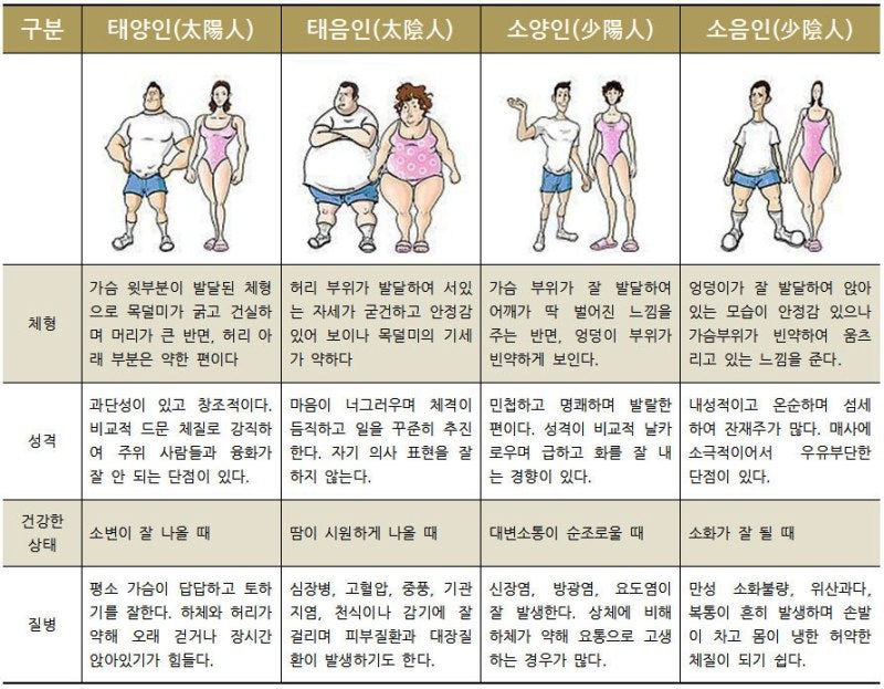 태양인은 전체 인구의 약 0.1%로 매우 드문 체질입니다. 폐 기능이 강하고 간 기능이 약한 특징을 가지고 있어 열이 위로 올라가기 쉽고 하체가 약한 경향이 있습니다. 따라서 차가운 성질의 음식으로 열을 내리고 담백한 음식으로 소화 부담을 줄여야 합니다.