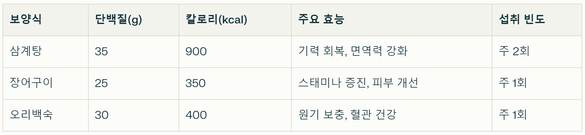 - 보양식 섭취 후 몸의 반응을 관찰하여 체질에 맞는지 확인하세요