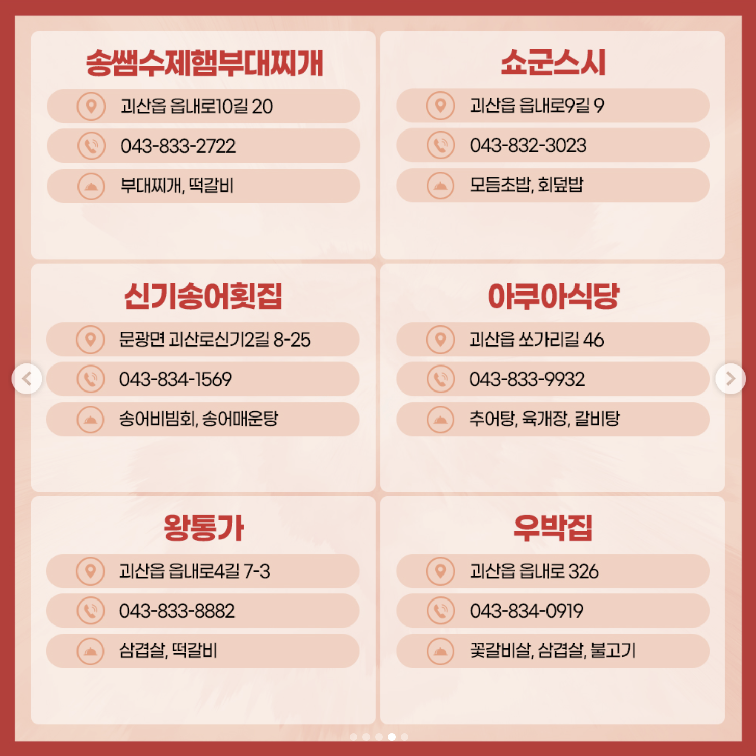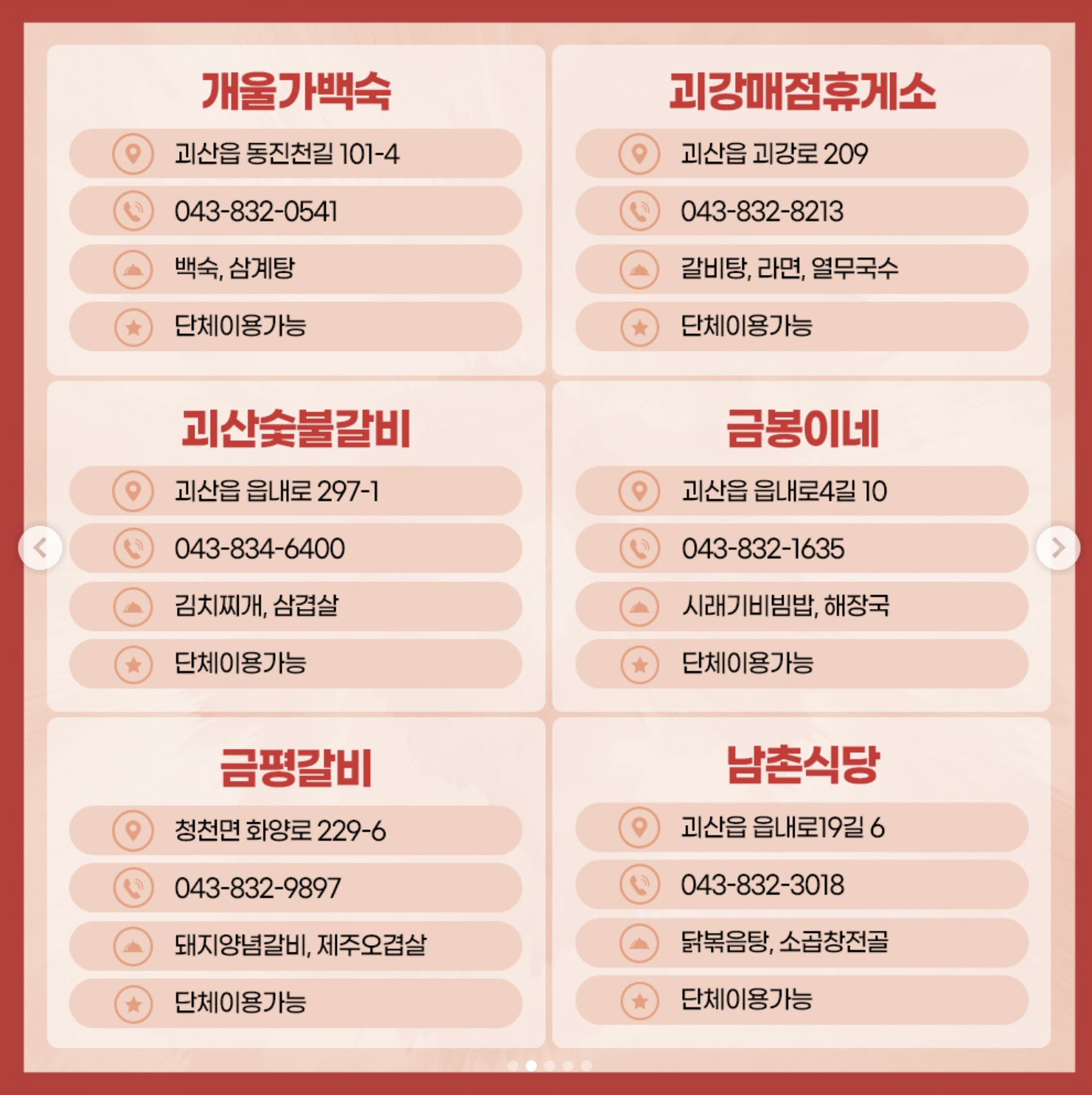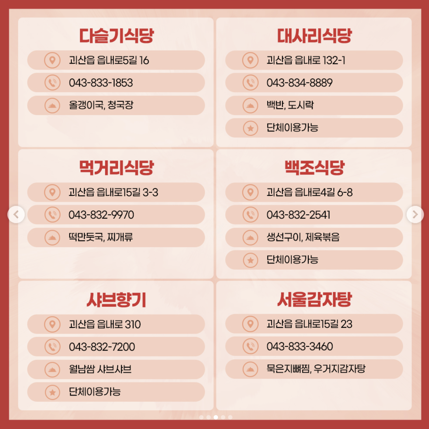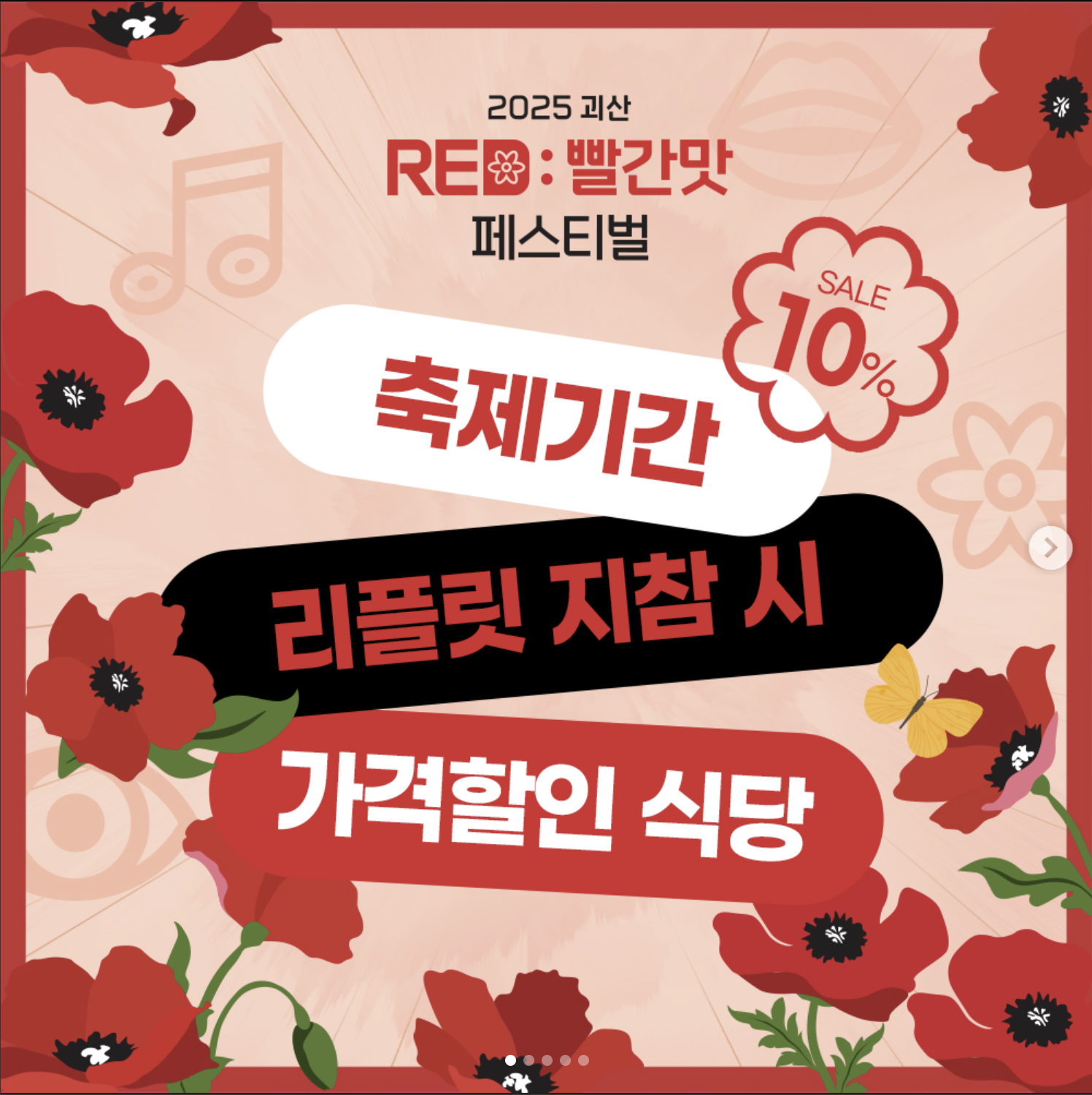 축제 기간 방문객은 지역 식당과 관광지 할인 혜택도 받을 수 있어 괴산의 매운맛과 봄의 활기를 동시에 느낄 수 있는 트렌디한 지역 대표 축제입니다.
