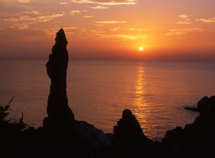 절벽 위 정자와 소나무 숲 사이로 감상하는 깊은 일출이 특징입니다. 100년 이상 된 소나무가 우거진 해안 절벽 위에 위치하여 송림 실루엣과 붉은 태양이 어우러진 천하절경을 만들어냅니다. 정자 진입 전 등산로가 어두우니 랜턴을 준비하는 것이 좋으며, 주변 풍광이 아름다워 예로부터 시인들의 발길이 끊이지 않았던 곳입니다.